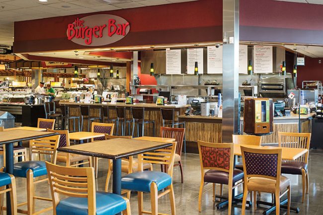 店内は通常の「カフェ」と呼ばれるイートインスペースのほか、手づくりバーガーショップ「バーガー・バー」も併設されている。