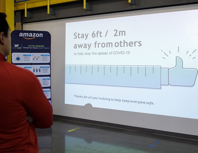 2つ目。新型コロナウイルスの感染が拡大するなかで、オンラインで食料品を購入する人が大幅に増えている。その顧客のニーズに応えるため、出荷量を増やす施策を講じている。そして、フルフィルメント・センターで働く社員の健康面での安全に配慮して「ソーシャル・ディスタンシング(Social Distancing)」を保つこと、施設を清掃することを徹底している。「ソーシャル・ディスタンシング」とは「感染拡大を防ぐために物理的な距離をとる」ことで、アメリカでは会話をするときや列に並ぶときに、人と人との距離を6フィート(約2メートル)以上とることを推奨している。