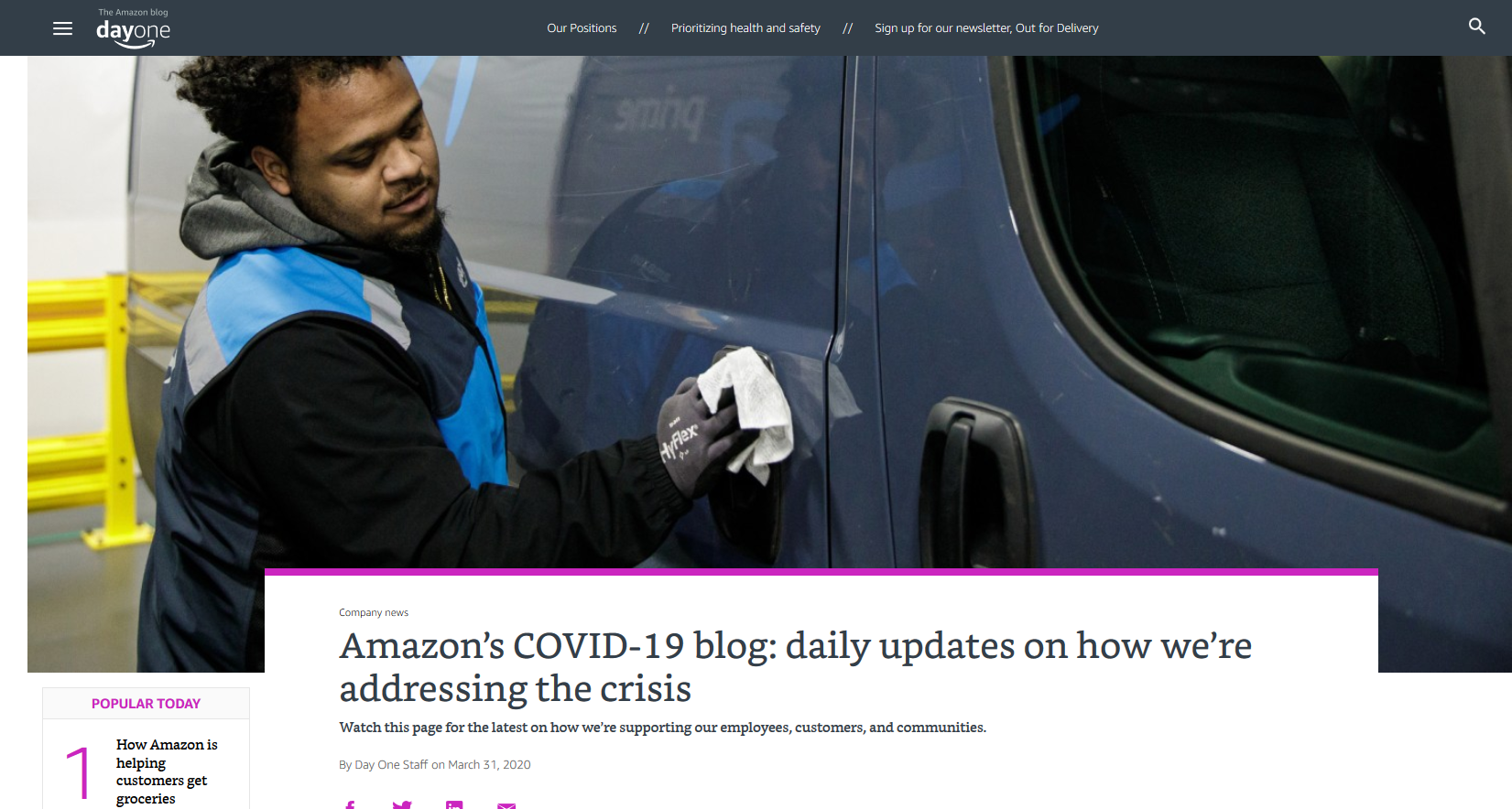 Amazon news|新型コロナ拡大の中の「Amazon’s COVID-19 blog」広報作戦