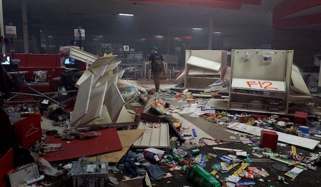 ターゲットのその活動は地域コミュニティや地域住民、顧客がよく了解している。だからこそ住民たちは、荒らされた店舗の片づけを手伝ったり、略奪できないようにガードしたりする。