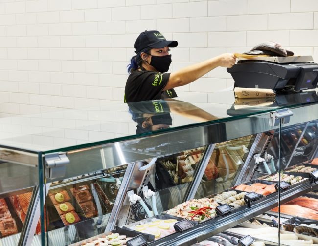 グランドオープンした17日~22日の期間はロテサリーチキン4.97ドル、ピザスライス1.79ドル、ホールピザ8.99ドル、バナナ1本15セント、フランスパン89セント、サーモンフィレ(皮付き)1ポンド当たり5.99ドルと、セール価格で販売した。