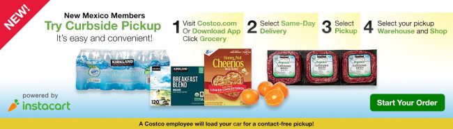 コストコのカーブサイド・ピックアップは会員限定で、食料品の即日配達サービスを運営するインスタカート社と提携している。宅配サービスと同様、アプリなどはインスタカートの注文システムを利用しているが、店内での注文品の準備から受け渡しまでコストコの従業員が行う。