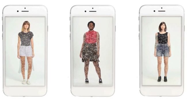 ジーキットの画像認識処理アプリを使えば、顧客は店舗の試着室に入ることなく衣類を試着することができる。
