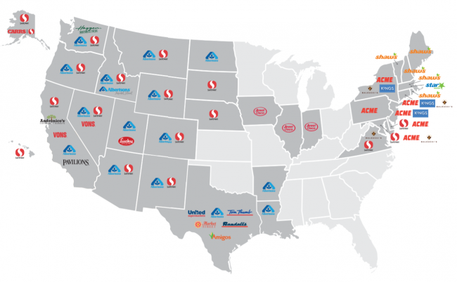 同社は第1四半期期末時点で34州に2278店舗を展開するナショナル・チェーンだ。M&Aを繰り返して成長してきているため、「アルバートソン」をはじめ、「セーフウェイ」「ボンズ」「ジュエルオスコ」などマルチバナーで展開する。