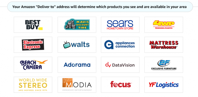現在対応エリアは一部地域のみだが、今後2022年にかけて、ピックアップ可能店舗が拡大される。ピックアップ可能店舗は、今のところナショナル・チェーンやリージョナル・チェーンのベスト・バイ、メイビス・ディスカウント・タイア、シアーズ・ホームタウン・ストアなど16社で利用できる。このサービスによって、地域のビジネスのサポートと顧客宅への配達に不向きな商品の販売が容易になり、組み立てや設置サービスを依頼することも可能となる。