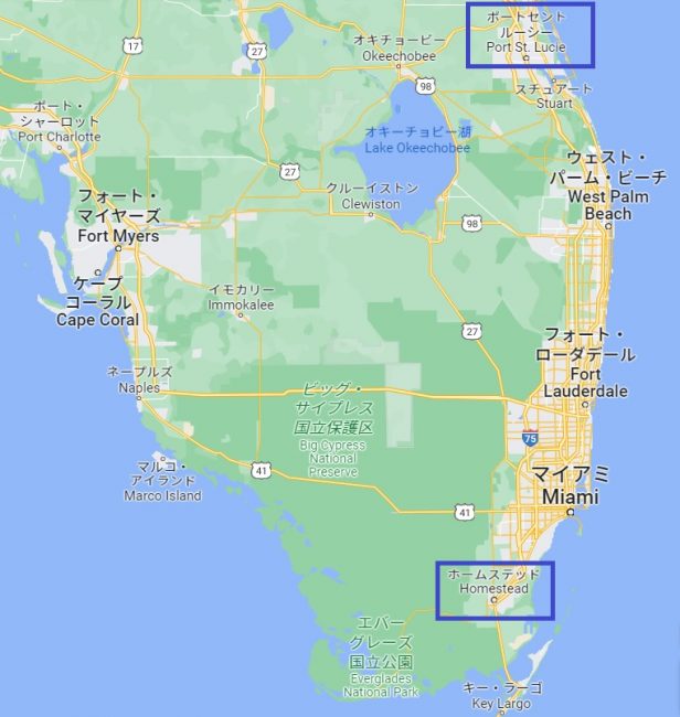 なおマイアミの180km北のポート・セントルーシーから、60km南のホームステッドまで、高速道路I-95号線に沿った広域が配送エリアとなっている。