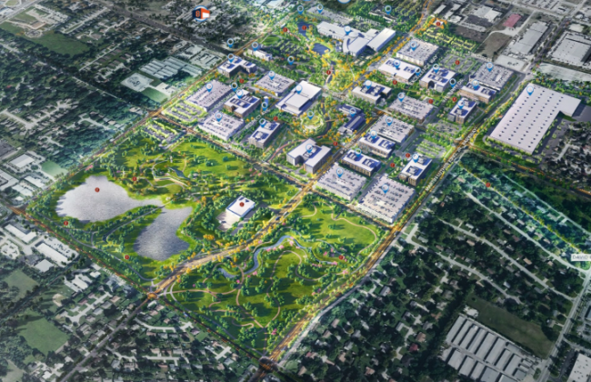2019年以降、既存の施設を解体してリサイクルし、12棟のオフィスビル、保育所や従業員食堂、ホテルなどのアメニティビル、立体駐車場、平面駐車場が順次建設されてきた。