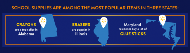 ウォルマートが8月の「バック・トゥ・スクール」商戦で力を入れる文具類もよく売れているようだ。